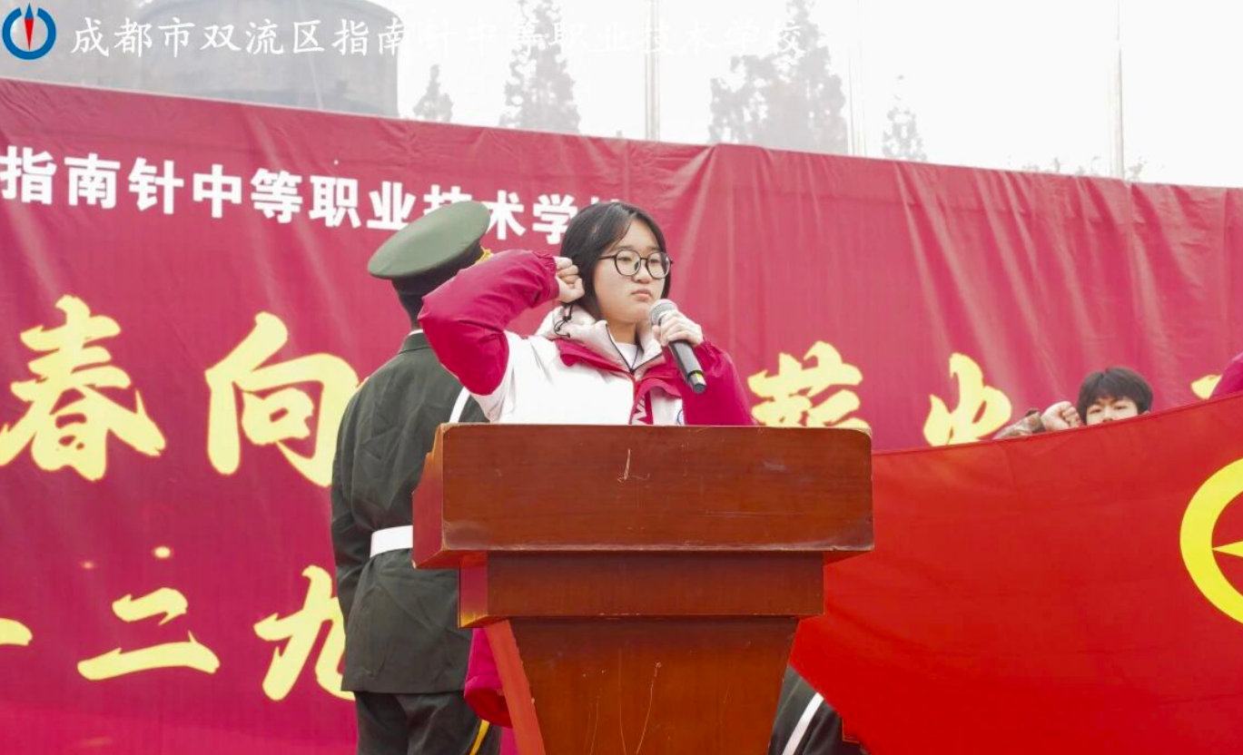 为深入学习贯彻习近平新时代中国特色社会主义思想,传承红色基因,凝聚青春力量,12月9日上午9时30分,成都市双流区指南针中等职业技术学校2025年秋季学期新团员入团仪式在足球场隆重举行。学校执行校长周宇、各部门负责人、全体团委干部及全校师生参加仪式,共同见证这一光荣时刻,仪式由校团委书记符英华主持。